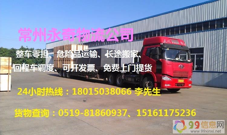 常州永奇物流 提供回程车源,货源,专线,运输,配送,仓储,保险等一条龙服务,常州到全国各地专线运输主要有普通货车、整车、零担货运、7.2米,8.2米 9.6米,13米,17.5米,平板,高栏以全国各地优惠的价格,优质的服务,简便齐全的手续,灵活的结算方式,24小时为您服务!