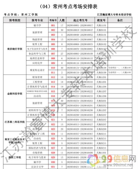 2020年五年一贯制专转本考场安排细则9+9+信+息+网