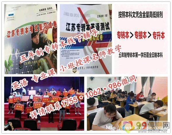 正规的五年制专转本辅导班是针对转本英语和专业课考点来教学的,不是什么英语都教的,侧重点不同,复习的内容不对,那就是浪费时间,转本只有一次机会,家长和考试一定要重视,江苏瀚宣博大专转本学校是江苏省唯1针对五年制专转本考试辅导的培训机构,辅导英语和所有主考院校专业课,14年教学经验,师资雄厚,教学资源丰富,历年通过率稳定在85%以上,是江苏省内所有五年制专转本考生和家长首要考虑的机构,家长和考生可以来校区试听实地考察上课情况和师资,详情联系瀚宣博大宋老师1755(微)1062(信)986了解,联系老师预约转本免费试听课9.9.信.息.网。